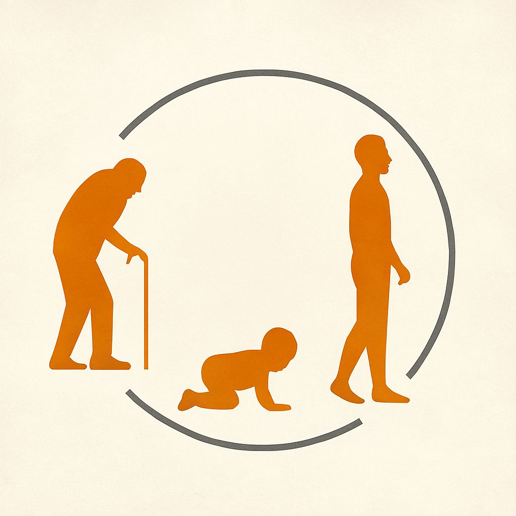 پیدائش کے بعد وہ آہستہ آہستہ سیدھا ہونا شروع ہوتا ہے، یہاں تک کہ کمر سیدھی کر کے کھڑا ہو جاتا ہے اور مضبوطی کے ساتھ حرکت کرنے لگتا ہے۔ لیکن جب زمانہ اپنی گردش پوری کرتا ہے تو وہ اُسے پھر اسی جھکی ہوئی حالت کی طرف لوٹا دیتا ہے۔ کمر جھک جاتی ہے، ہڈیاں کمزور پڑ جاتی ہیں، اور حرکت کی صلاحیت سمٹنے لگتی ہے، گویا جسم بتدریج اسی پہلی صورت کی طرف پلٹ رہا ہو جس سے اس نے اپنا سفر شروع کیا تھا۔